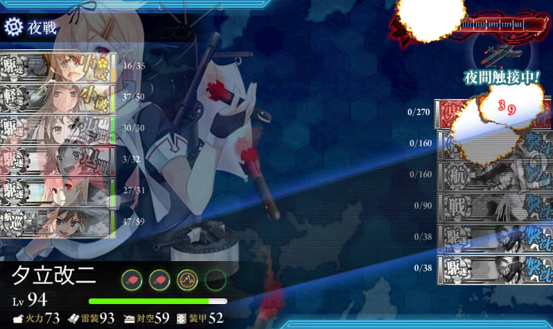 下3隻を撃沈して、さらに照明弾&夜偵発動。