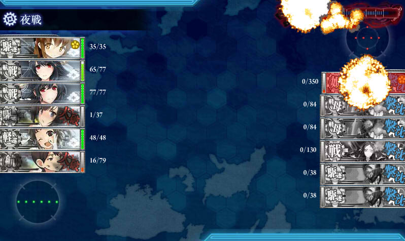 夜戦5人の連撃、計10回カスダメで撃破失敗。