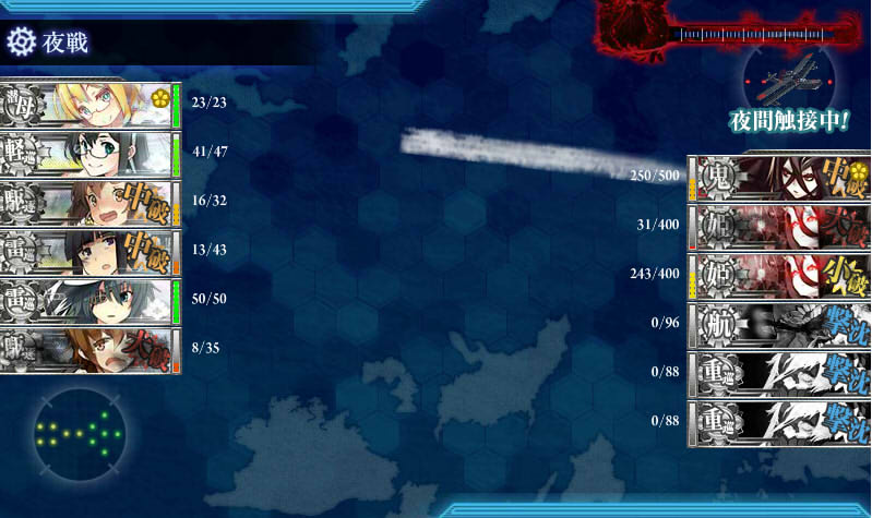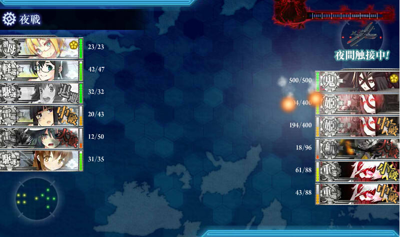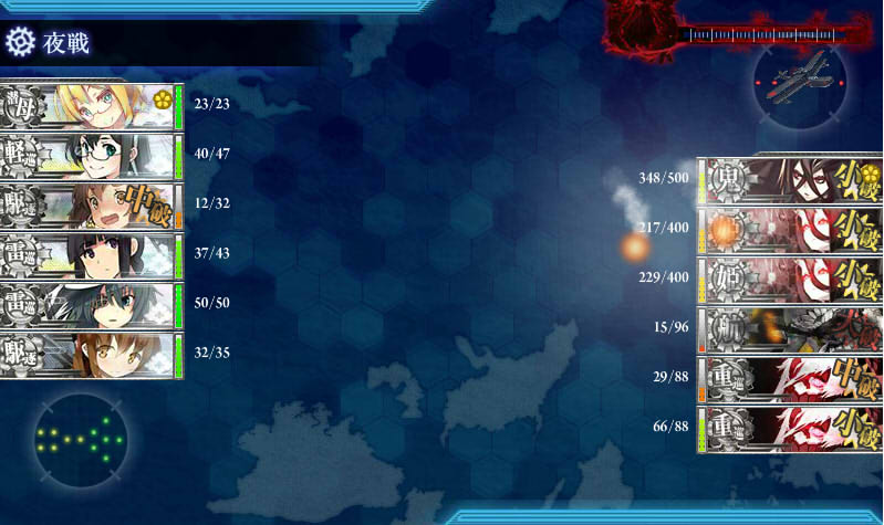 連合艦隊じゃないので空母棲姫が攻撃を当てまくってくるので夜戦要因が大破しないように祈るマップでしたね。
