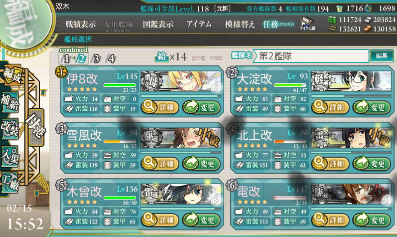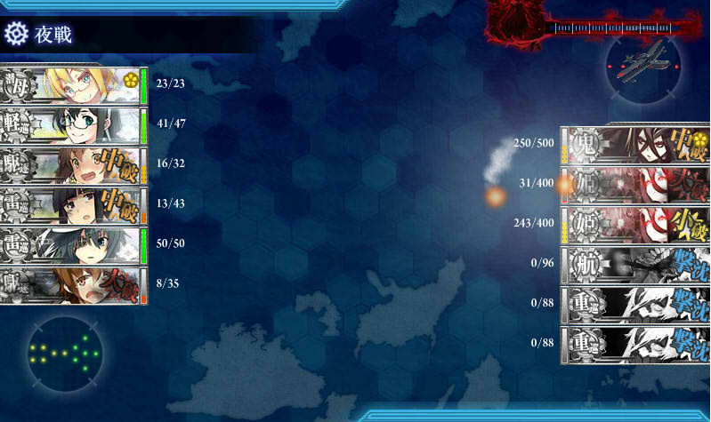 水雷戦隊の方は2戦目のフラグシップ雷巡を撃ち漏らしやすく、雷撃で大破しやすいです。