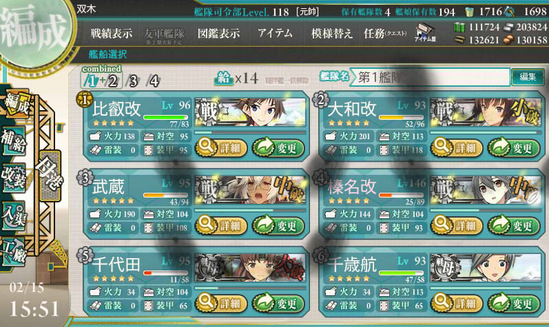 T字不利抜きにも火力不足な気がしたので満を持して大和型を投入です。