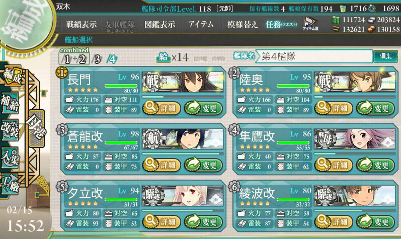 あとは第一艦隊旗艦に司令部施設でボス到達率を高めれば問題ないと思われます。